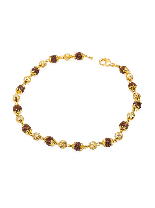 Celebrate the sacred bond of Raksha Bandhan with Aadita’s elegant bracelet rakhi featuring alternating Rudraksh and gold-plated textured beads. Designed with a secure lobster clasp for a perfect fit, this rakhi doubles as a stylish bracelet your brother can wear all year round. It is both spiritual and fashionable—perfect for...