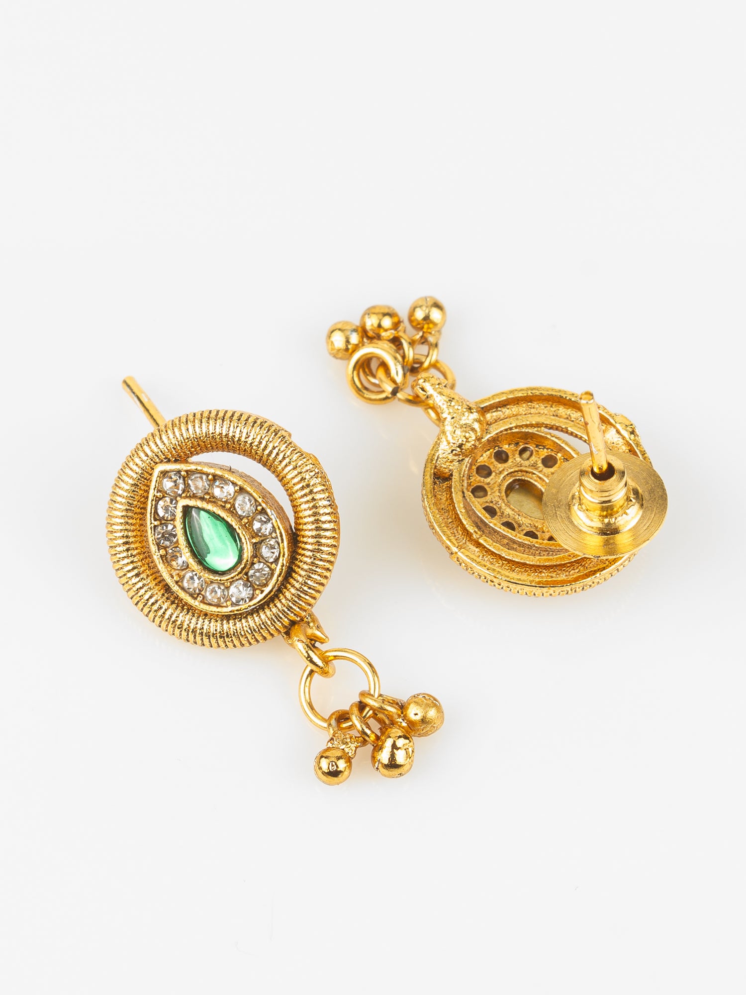 Embrace traditional elegance with the Aadita Gold Plated Necklace Set, perfect for festive and ethnic looks. This intricately crafted set features eye-catching mirror stones and artistic motifs that reflect timeless beauty. Designed to elevate your ensemble, it is ideal for weddings, cultural gatherings, and special occasions.