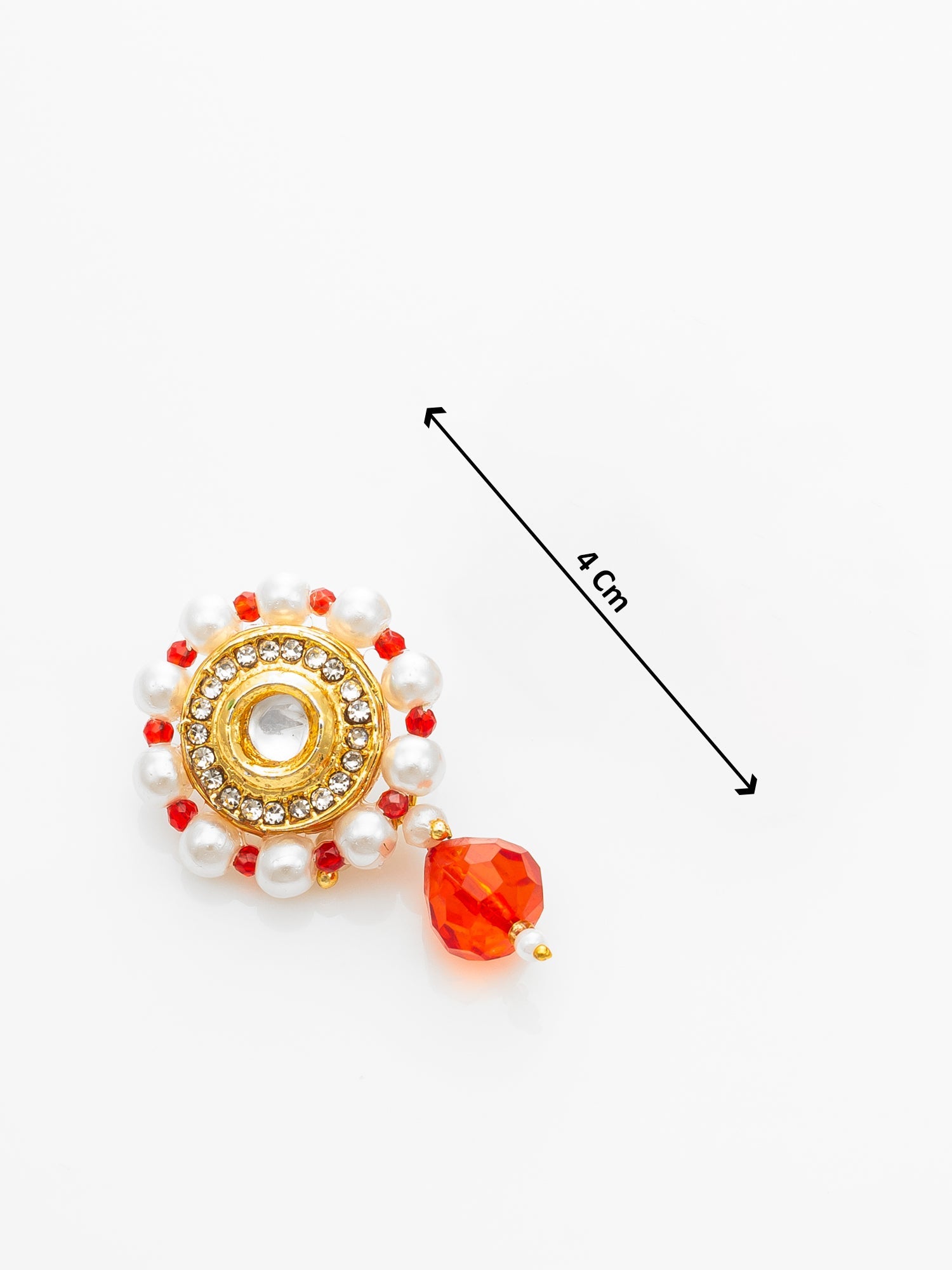 Adorn yourself with regal elegance in this Aadita red beaded choker necklace set. Featuring a bold red stone-studded circular pendant framed in kundan work, this traditional piece is paired with complementing earrings. Layers of white and red pearl beads complete the look, adding richness to ethnic and festive outfits.