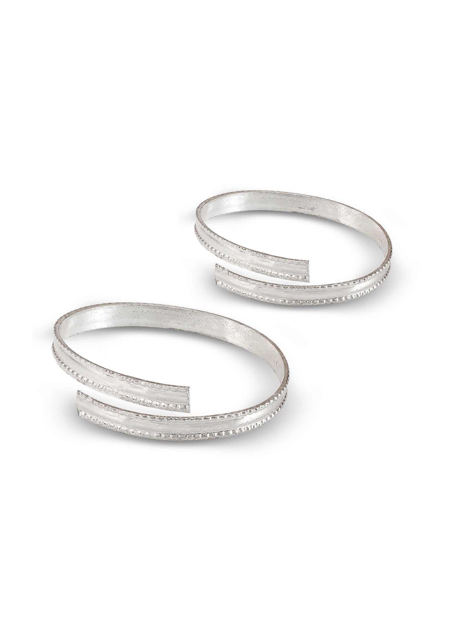 These traditional spiral-style toe rings by Aadita feature a refined textured border, offering a blend of ethnic charm and contemporary elegance. Designed for a comfortable wrap-around fit, the silver-toned finish enhances their premium look, making them a perfect accessory for both daily wear and festive occasions.