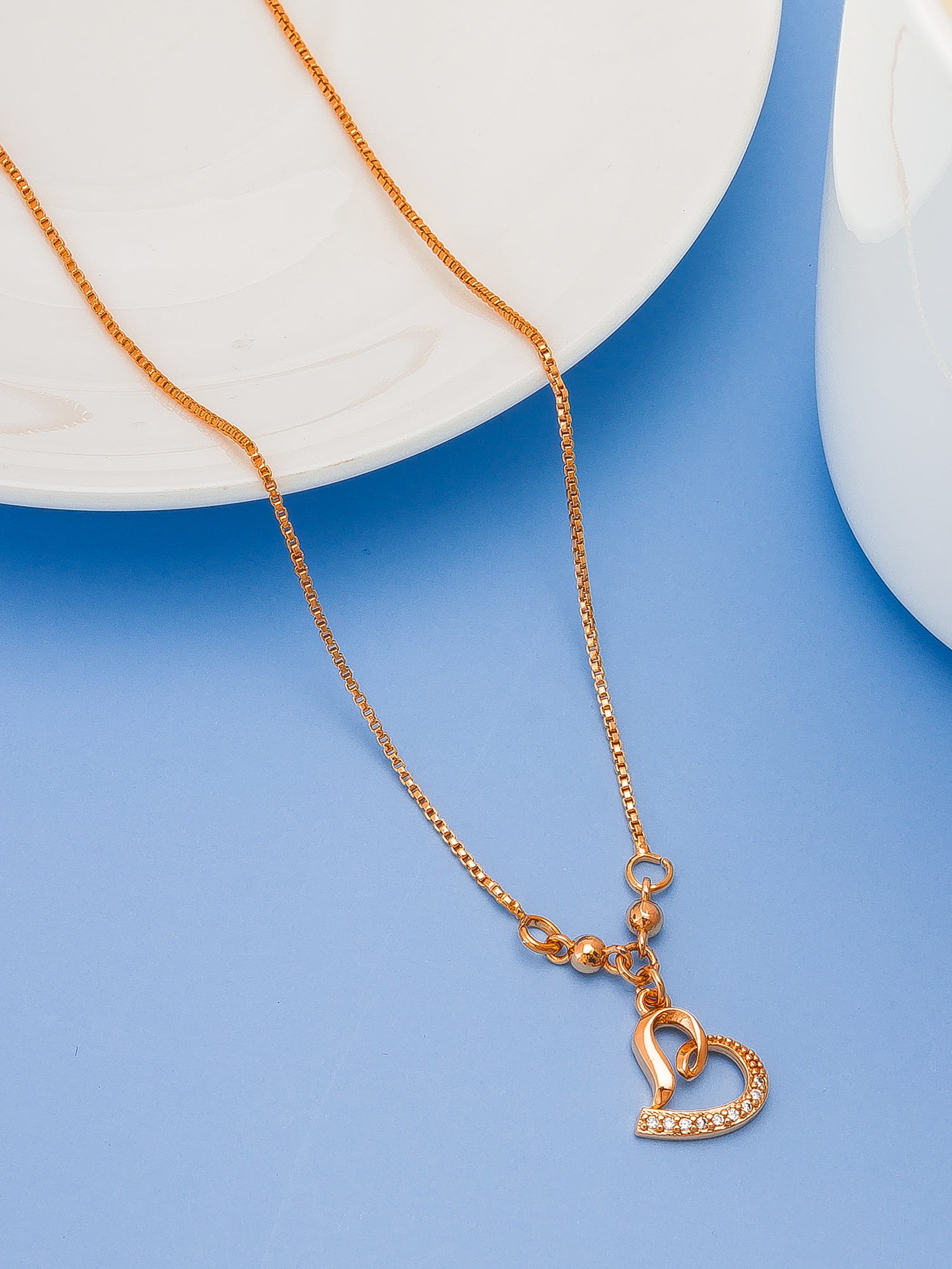 Showcasing a modern interpretation of a timeless symbol, this Aadita pendent centers on a stylized open heart pendant. The design features a fluid, polished gold-tone curve on one side, contrasted by a dazzling row of white stones on the other. Its contemporary silhouette and balanced sparkle make it an ideal choice for enhancing casual outfits or adding a subtle highlight to evening attire.